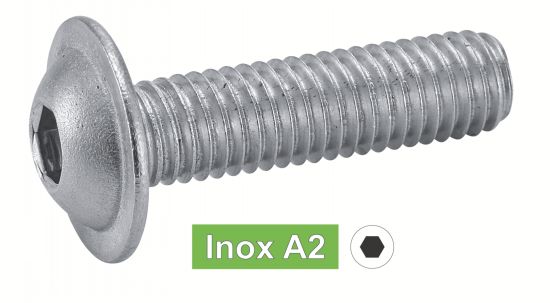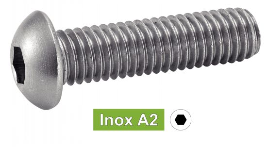 VIS A METAUX TETE BOMBEE SIX PANS CREUX Inox A2 - ISO 7380-1
