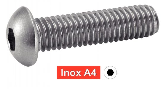 VIS A METAUX TETE BOMBEE SIX PANS CREUX Inox A4 - ISO 7380-