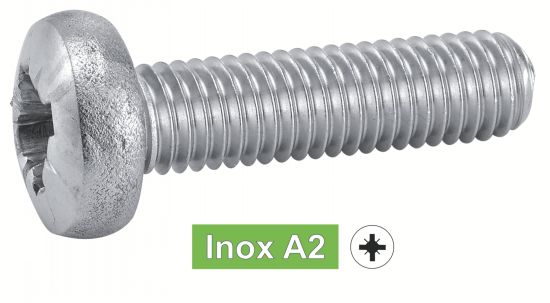 VIS A METAUX TETE CYLINDRIQUE PHILLIPS Inox A2 - DIN 7985 - (similar ISO 7045, NFE25-121, UNI 7687)